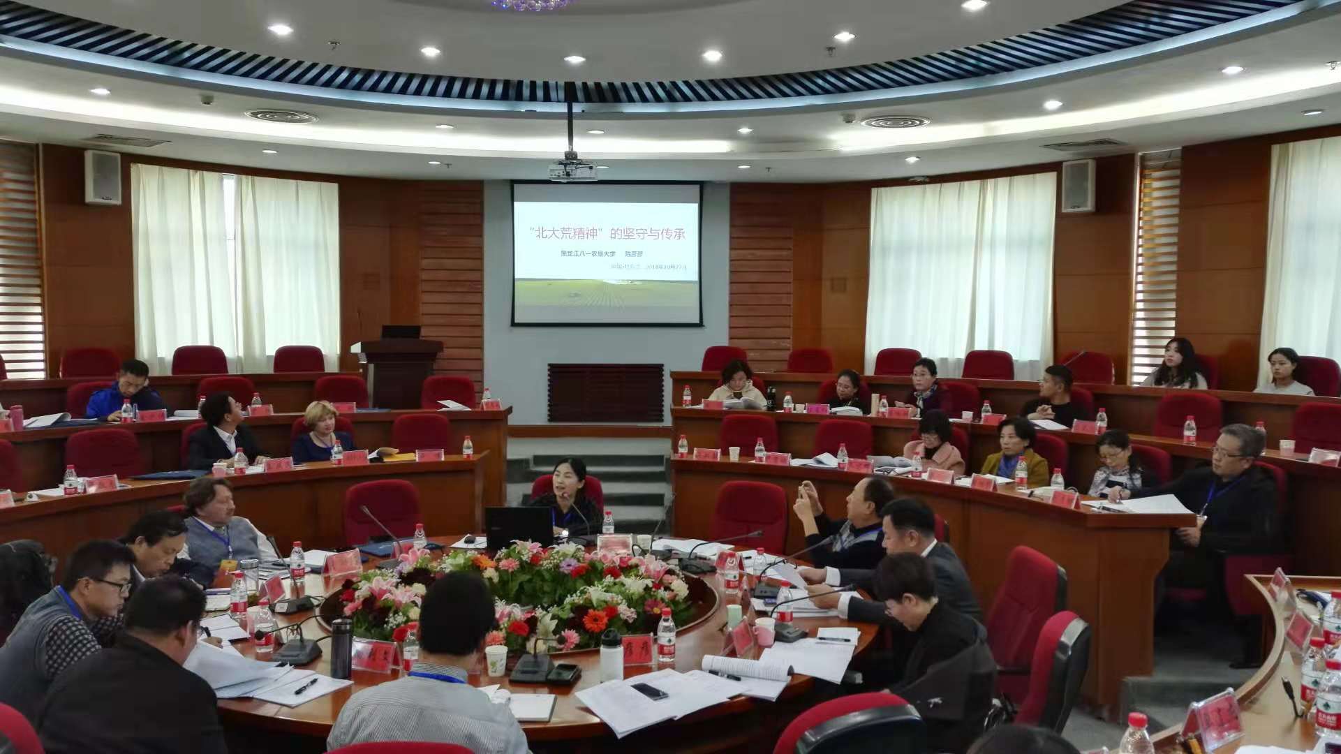 陈彦彦主任以《北大荒精神的坚守与传承》为题向大会做了主题发言。陈彦彦主任首先对牡丹江师范学院中国抗联研究中心在弘扬抗联精神的工作中所取得成绩和优秀工作经验表示祝贺,突出阐述了抗联精神的时代价值和当代使命。同时,向与会专家学者详实地介绍了“黑龙江八一农垦大学北大荒精神学术交流基地”的建设情况,并阐述了新时代北大荒精神在中华民族精神谱系中的历史地位、精神内涵、时代价值和传承路径,不断开创弘扬中华民族优秀精神的新局面、新境界。