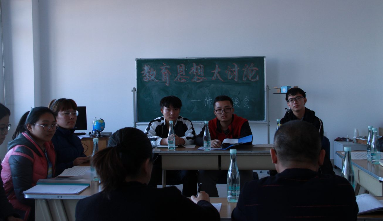 为深入贯彻落实学校和思政部本科教育思想大讨论的总体工作要求。2018年11月14日,思想道德修养与法律基础教研室在主楼723召开了“加强本科生教育大讨论系列活动之师生座谈会”。基础课教研室全体教师以及10位18级学生代表参加了本次座谈会。座谈会上,大家畅所欲言。师生共同分析了课堂教学过程中存在的问题,以及形成这些问题的具体原因。同时,对下一阶段如何坚持以人为本,恪守“四个回归”,强化课堂管理,切实提升课堂效果进行了深入的探讨,并提出了具体的可行性计划。最后,基础课教师表示要紧密结合大学生的学习规律,坚持社会主义办学方向,把马克思主义作为中国特色社会主义大学的“鲜亮底色”,促进专业知识教育与思想政治教育相融合,发展素质教育,围绕激发学生学习兴趣和潜能深化教学改革,全面提高学生的社会责任感、创新精神和实践能力,引导教师以德立身、以德立学、以德施教,更好担当起学生健康成长指导者和引路人的责任。