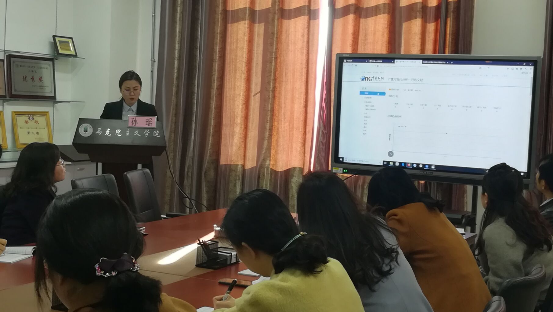 为提高教师强化理论武装和从事思想教育的能力,4月10日,马克思主义学院邀请中国知网黑龙江分公司项目经理孙瑶作题为《走进黑龙江八一农垦大学马克思主义学院——提高学习研究能力》的专题讲座,全体教师参加。