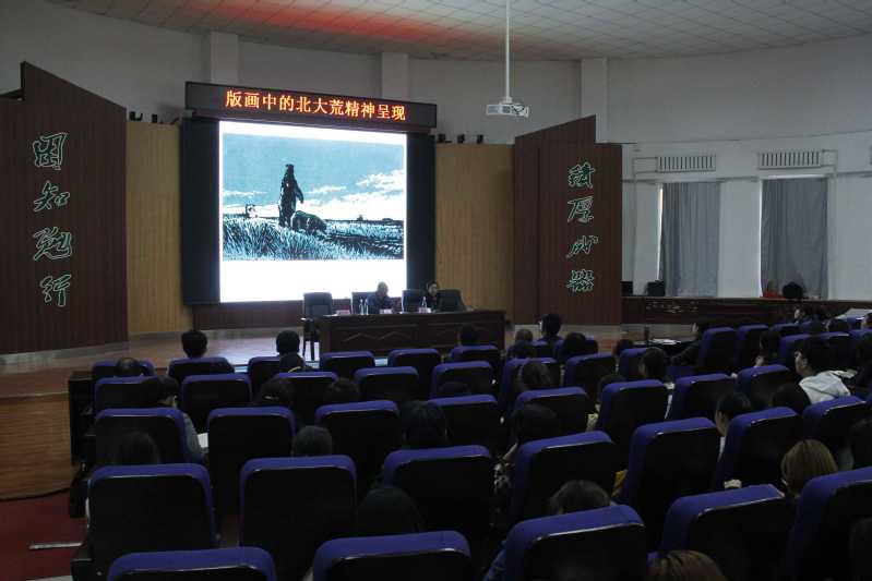 为加强全校师生对北大荒精神的深入了解,弘扬北大荒精神,北大荒精神与文化研究所、马克思主义学院于4月24日下午邀请北大荒版画院院长张泽新作“版画中的北大荒精神呈现”主题学术报告。北大荒日报社美术部、技术部主任张奎作为嘉宾受邀参加。北大荒精神与文化研究所、马克思主义学院全体教职员工及各学院相关专业学生参加了此次学术交流活动。