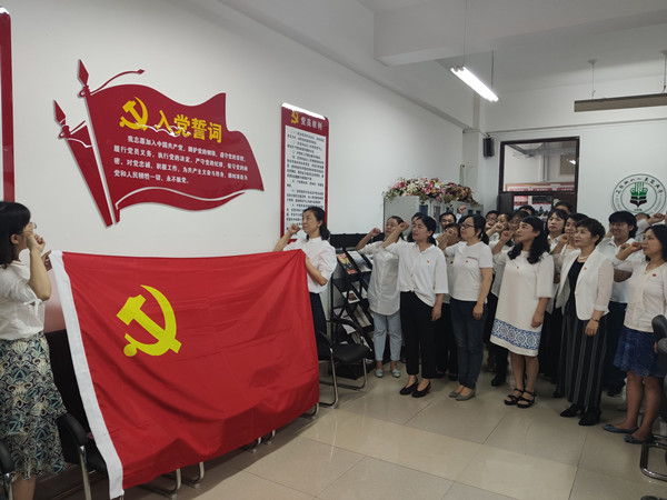 7月1日上午9时,全体党员教师身着正装、胸前佩戴党徽,重温入党誓词。党员们用铿锵有力的誓言,表达了对党的母亲98岁生日的最真挚祝福。学院党总支为每位党员制作了“党员政治生日贺卡”,代表党组织表达对党员政治生日的问候,通过贺卡寄语,帮助每位党员明确了入党时间,激励党员教师不忘初心、牢记使命,在教书育人中传递信仰的力量。