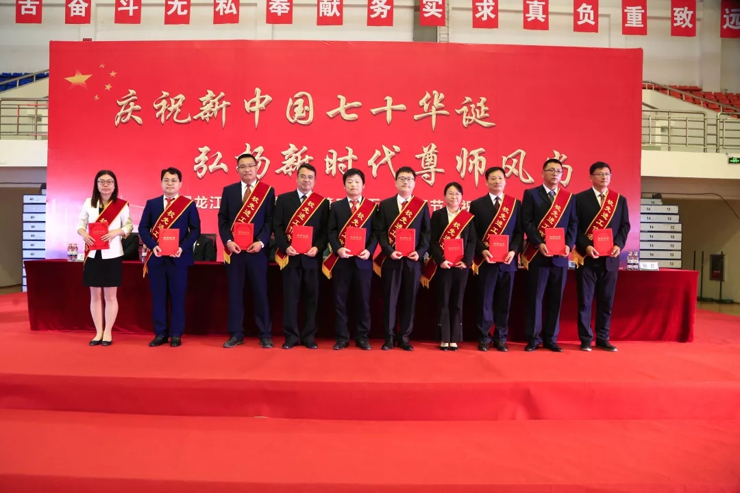 为庆祝中华人民共和国成立70周年,喜迎第35个教师节,9月10日下午,黑龙江八一农垦大学在体育馆举行2019年教师节庆祝表彰大会,表彰一批在教学、科研、管理与服务工作中做出表率的人员,激发广大教职工立足岗位、争创一流业绩的工作热情,推进我校事业又好又快发展。校党委书记董广芝,校长郑喜群,副校长于立河、安增龙、张东杰,校纪委书记韩延平,组织部部长田伟,宣传部部长耿君,全体教职工,2019年荣休教职工,学生代表参加大会。郑喜群主持大会。