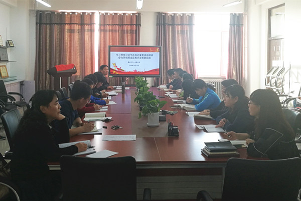 为使思政课教师能在“不忘初心、牢记使命”主题教育中,更加系统地学习习近平新时代中国特色社会主义思想,10月22日下午,马克思主义学院党总支召开理论学习中心组学习扩大会,全体教师参加学习。学院“概论与纲要”党支部书记高飞,以《学习贯彻习近平总书记重要讲话精神 奋力开创黑龙江振兴发展新局面》为题作专题主讲。