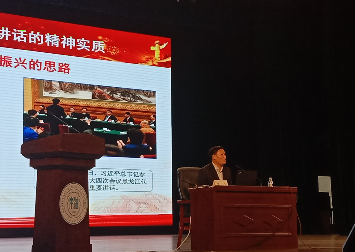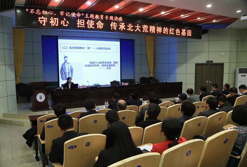 1、10月29日,马克思主义学院陈彦彦院长面向各基层党委、党总支、直属党支部委员,各基层党支部书记,全校科级以上干部、全体辅导员做《守初心 担使命 传承北大荒精神的红色基因》“不忘初心、牢记使命”主题教育专题讲座。