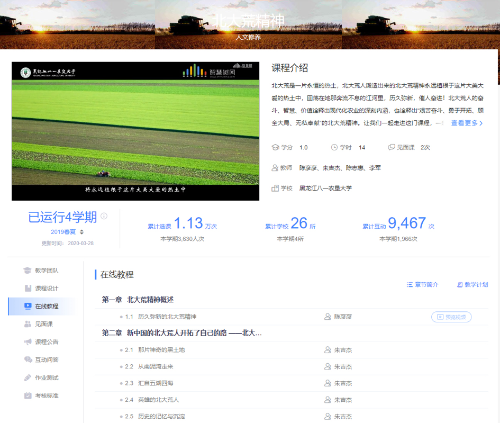 围绕“北大荒精神”元素建设特色思政课程体系,学校于2017年开始建设《北大荒精神》在线课程,2019年成功获批为黑龙江省首个以红色精神为主题同时面向全国的精品在线课程,目前已被24所高校1.1万人次选修。同时,学校依托自建的北大荒精神展示馆开展实践教学,增强思政课的亲和力、感染力。