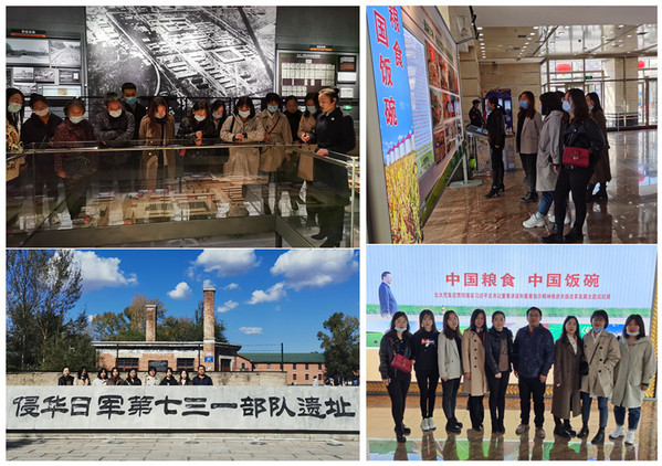 在《北大荒集团贯彻落实习近平总书记重要讲话和重要指示精神推进农垦改革发展主题成就展》,教师们通过图文结合的形式,对前言、改革改制、战略升级、技物结合、产融结合、产业融合、文化铸魂、党建引领等8个板块进行了认真学习,对北大荒集团近年来取得的崭新成就,特别是北大荒粮食生产的科技化和信息化水平的高速发展有了更深刻的感悟和理解。通过参观731陈列馆展厅图片、细菌实验文字资料、日军罪恶实物以及遗址走访,使青年教师们直观了解日军在我国东北秘密进行的反人类罪行,在今后的学习和工作中更好地牢记历史、不忘过去、珍爱和平、开创未来。同时对史料的收集整理以及口述史方法的研学应用学习借鉴。