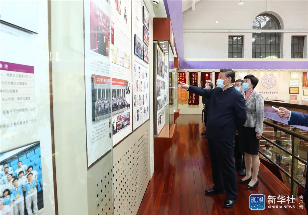 ↑4月19日,在清华大学建校110周年校庆日即将来临之际,中共中央总书记、国家主席、中央军委主席习近平来到清华大学考察。这是习近平在清华大学西体育馆体育荣誉室察看历史照片、实物展览,了解体育馆保护利用、学校继承发扬优良传统、开展体育教育等情况。新华社记者 鞠鹏 摄