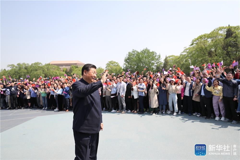↑4月19日,在清华大学建校110周年校庆日即将来临之际,中共中央总书记、国家主席、中央军委主席习近平来到清华大学考察。这是习近平离开学校时,同师生们挥手致意。新华社记者 鞠鹏 摄