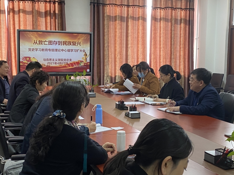 4月27日,马克思主义学院以“从救亡图存到民族复兴”为主题,召开党史学习教育专题理论学习中心组学习扩大会。学校党委副书记徐平,全体思政课教师参加学习。马克思主义学院教师孙红兵、高飞担任主讲。