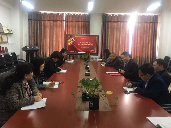 概论与纲要党支部学习会以学习习近平总书记关于党的历史的重要论述为主题,党支部书记高飞以《党的历史是丰富生动的教科书》为题做主题发言,结合实际教学工作,围绕学习党史和新中国史的主要内容和重要意义进行深入学习交流。