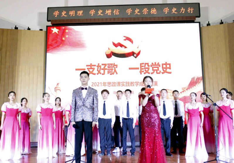 活动中,10位师生党史讲述人,为在场观众讲述了中国共产党从创立、发展到壮大的光辉历程。各门思政课师生激情演绎了党史各时期具有代表性的经典歌曲,《没有共产党就没有新中国》《映山红》《南泥湾》《国家》《新的天地》等一首首激昂、优美的歌曲,反映了中国共产党带领中华民族寻求民族独立和人民解放、建立新中国、推进改革开放和中国特色社会主义事业、实现中华民族伟大复兴的辉煌功绩,用精心准备的表演为观众呈上一堂鲜活的思政课。