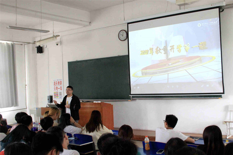 为庆祝建党100周年,推动党史学习教育融入思政课,进一步引导青年大学生学党史、悟思想,由马克思主义学院策划制作的2021年秋学期“开学第一课”,于学生返校开学的第一堂思政课上全面开讲。此次课程以“继承和发扬伟大建党精神,争做有志有为的时代新人”为主题,由校党委书记董广芝主讲。