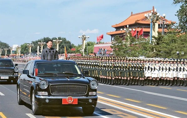 2015年9月3日,纪念中国人民抗日战争暨世界反法西斯战争胜利70周年大会在北京隆重举行。这是中共中央总书记、国家主席、中央军委主席习近平检阅受阅部队。 新华社记者 李学仁/摄