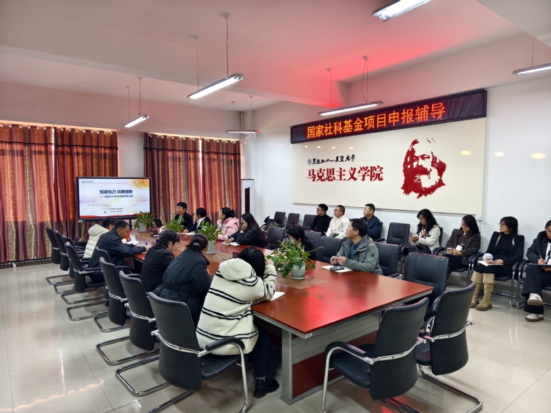 11月11日,马克思主义学院启动2026年国家社科基金项目申报工作。为进一步提升学院教师国家社科基金项目申报质量,破解申报过程中的重点难点问题,学院特邀东北林业大学马克思主义学院副院长刘伟杰教授开展国家社科基金项目申报专题辅导讲座。本次讲座以“知彼知己 精雕细琢”为主题,学院全体教师参加学习。